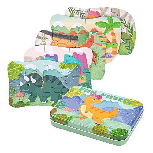 BBLIKE Barnpussel, dinosauriepussel för barn, 5 bilder pussel, lämpligt för pojkar och flickor pussel från 3-4-5 år