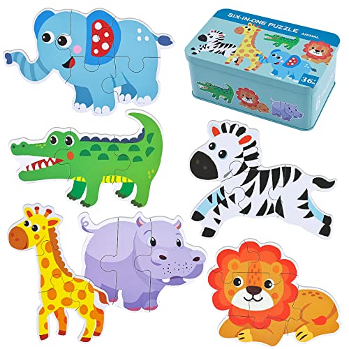 BBLIKE Pussel för barn 6 bilder Barnpussel från 3 - Lämplig för pojkar och flickor - Barnpussel från 3 till 4 till 5 år (djur)
