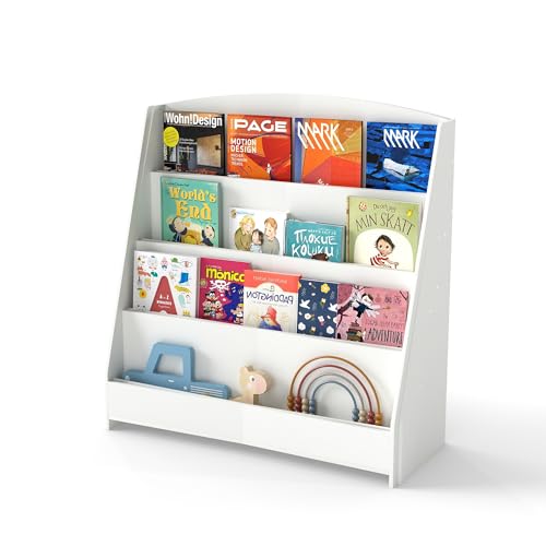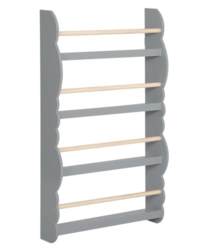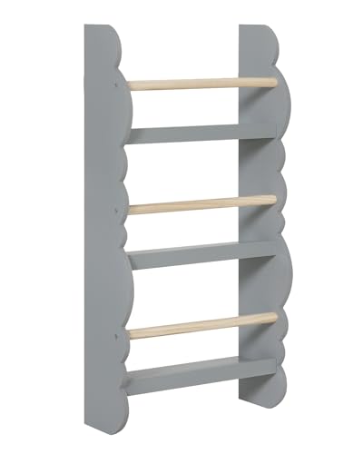WOLTU Kids Bokhylla Vägghylla, Bokarrangör med 4 våningar, Barnbokshylla, Tillverkad av E1 MDF Furu, för Lekrummet för barnrummet, Grå