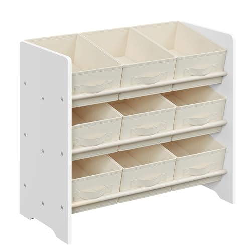 SONGMICS Leksakshylla för barn, Bokhylla för barn, 9 förvaringslådor i non-woven tyg, Hylla för barnrum, Rymlig, 29,5 x 62,5 x 60 cm, Molnvit GKR033W10