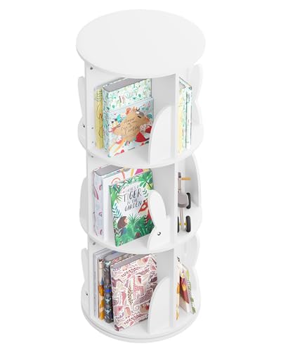 WOLTU Bokhylla barn, vridbar barnhylla med 3 nivåer, böcker hylla barnrum vardagsrum, roterande hylla leksakshylla barnbokhylla stående hylla, fristående, vit