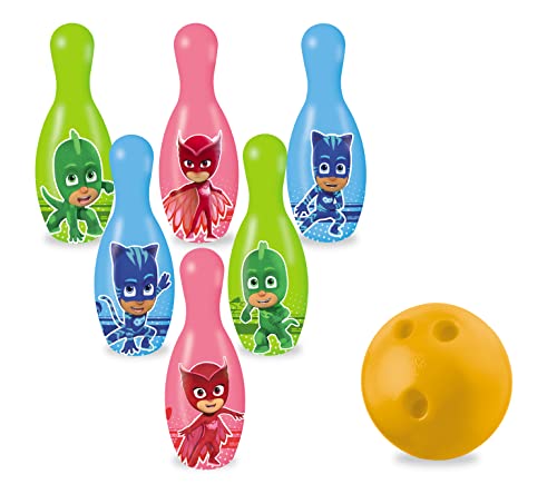 Mondo Toys – PJ Masks-bowlingset för barn, inklusive 1 boll och 6 PJ masker temakoner – sportleksak – lek för barn 2–3 4 år – 28430