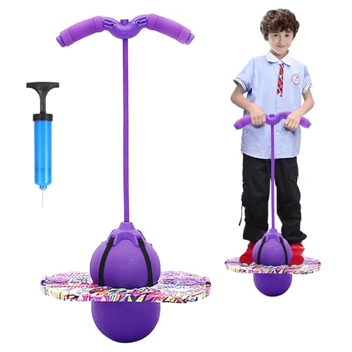 bechoanigel Pogo-stick för barn, Pogo-boll med handtag, 100 kg lastkapacitet, hoppstång med luftpump, Pogo-boll för sport, balansträning, viktminskning och fettförbränning, barn från 6 år (lila)