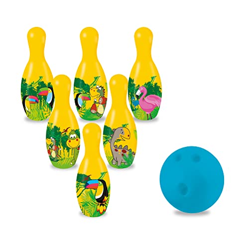 Mondo Leksaker – djungelbowlingset för barn – inklusive 1 boll och 6 djungeltemakoner – sportleksak – spel för barn 2 3 4 år – 28524