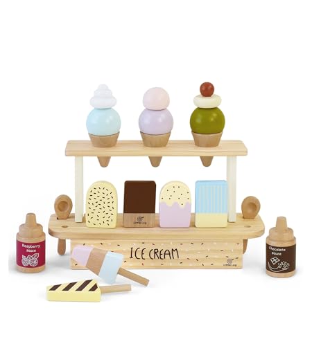 Träglassset för barn – rollspel matvagn butik med meny och falska pengar – lek kökstillbehör present till 3–7 år gamla flickor pojkar