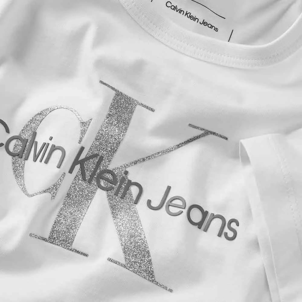 Calvin Klein Monologo Glitter Short Sleeve T-shirt Vit 8 Years Barn