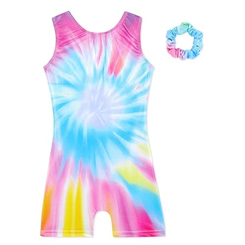 XiaoMoSha Gymnastik trikåer för flickor ärmlös enhet dans outfit för barn tonad färg glittrande regnbåge trikåer för små flickor 2-10 år, BlueSwirl, 4-5 År