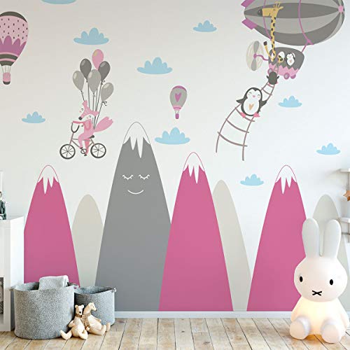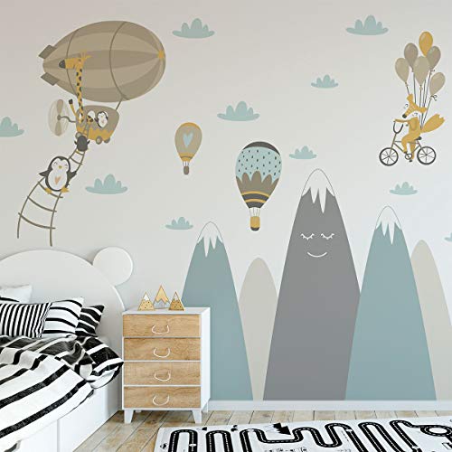 Väggklistermärke barn dekor gigantiska skandinaviska berg för sovrum bebis/flygande djur 50 x 90 cm 1 enhet