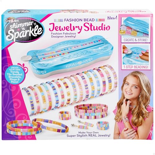ColorBaby 47911 Shimmer N Sparkle Smyckestillverkningssats, Pärlor Örhängen, Ringar och Armband, Japanska pärlor Färgad Lina, Inklusive Design Enhet med lock, Tillbehör för barn +8 år