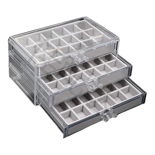 Ädelsten monter 54 fack, 3 lådor kjol samlingslåda, transparent akryl sten samlingslåda, smyckeskrin för barn förvaringslåda kristallarrangör, 15,5 x 23,7 x 10,8 cm