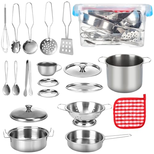Uppsättning av 20 st barnkök tillbehörsset, lerkök, tillbehör, rostfritt stål, lekkök, barn, utomhustillbehör med förvaringslåda, av plast, köksredskap barn för pojkar och flickor