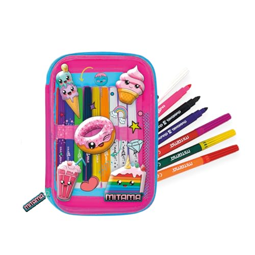Mitama Magiskt pennfodral, barn, rosa, godis, komplett med markörer, skola och fritid, Rosenröd, Taglia Unica, Tecknad