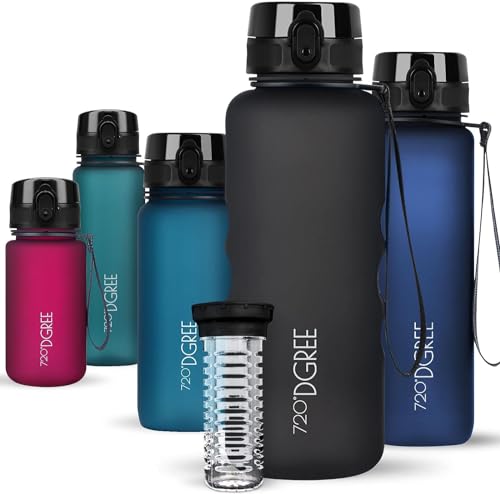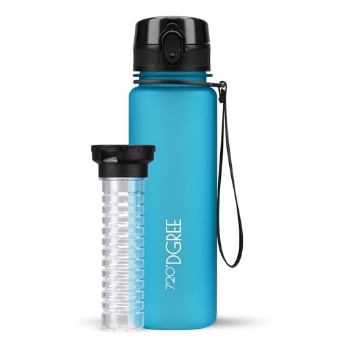 720°DGREE Vattenflaska "uberBottle" + fruktinfusion - 350 ml, 500 ml, 650 ml, 1 l, 1,5 l - BPA-fri Tritan, läckagesäker, återanvändbar - sport dricksflaska för barn, gym, fitness, utomhus, cykling, skola 10 himmelsblå | Softtouch 500ml