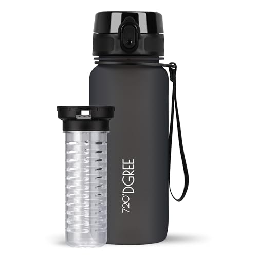 720°DGREE Vattenflaska "uberBottle" + fruktinfusion - 350 ml, 500 ml, 650 ml, 1 l, 1,5 l - BPA-fri Tritan, läckagesäker, återanvändbar - sport dricksflaska för barn, gym, fitness, utomhus, cykling, skola Svart 07 Onyx svart | Softtouch 650ml