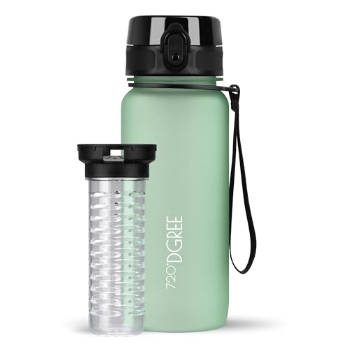 720°DGREE Vattenflaska "uberBottle" + fruktinfusion - 350 ml, 500 ml, 650 ml, 1 l, 1,5 l - BPA-fri Tritan, läckagesäker, återanvändbar - sport dricksflaska för barn, gym, fitness, utomhus, cykling, skola 15 kiwgrön | Softtouch 650ml