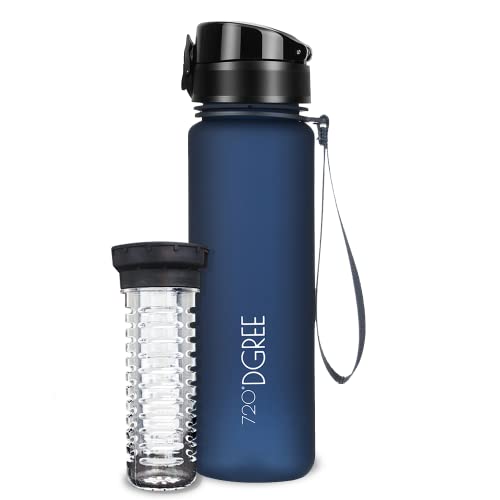 720°DGREE Vattenflaska "uberBottle" + fruktinfusion - 350 ml, 500 ml, 650 ml, 1 l, 1,5 l - BPA-fri Tritan, läckagesäker, återanvändbar - sport dricksflaska för barn, gym, fitness, utomhus, cykling, skola 09 safirblå | Softtouch 500ml