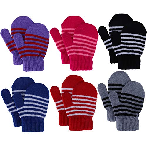 Jupsk Småbarnshandskar barn vinter varma stickade handskar magiska stretch randiga bebisvantar för pojkar och flickor 1 2 3 4 år, 6 par, Multicoloured, en storlek