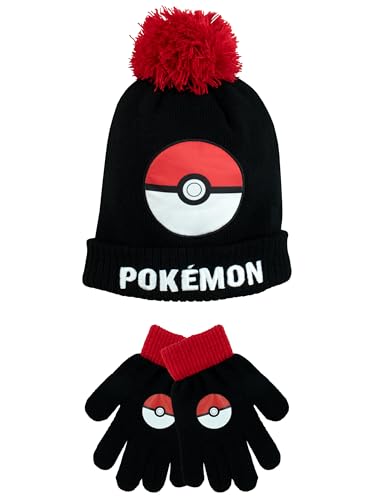 Pokemon mössa och handskar set för barn | Flickor och pojkar vinter mössa och handskar | Mössa för barn | Röd One Size