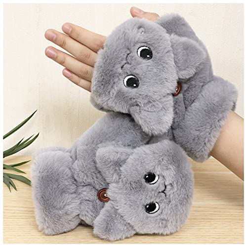 Julhandskar Päls kanin vantar flip fingerlösa handskar kvinnor vinter plysch varm handske mjuka tjocka handskar for kvinnor flicka flexibel halvfinger Barn handskar (Color : Grey, Size : Taille uniq