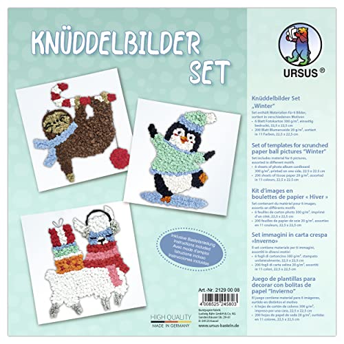 Ursus 21290008 Handskar Vinter Hantverksset för barn från 3 år, med 6 motivmallar och färgat sidenpapper, för att tillverka bilder av pappersbollar, färgglatt