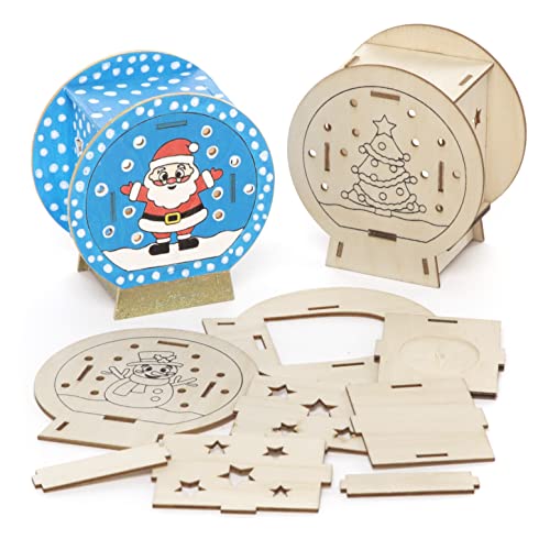 Baker Ross FC264 Snöglob hus trä modellkit – paket med 3, värmeljushållare för att dekorera och visa, trähantverk för barn, perfekt julkonst och hantverksprojekt