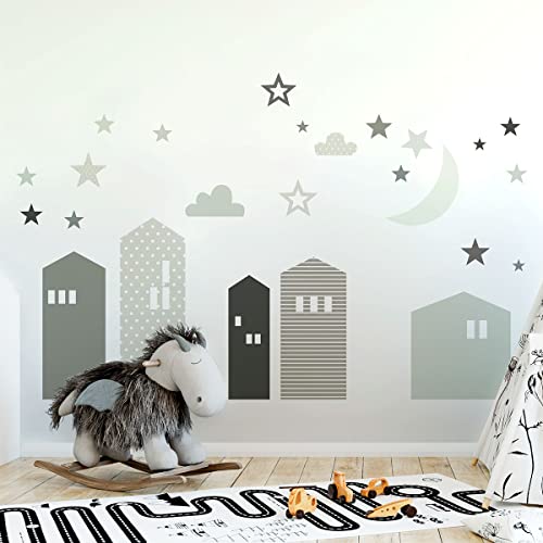 Väggklistermärken för barn - dekoration av barnkammaren - väggklistermärken för barn - skandinavisk väggdekal - gigantisk väggdekal hus under stjärnhimlen - H120 x L180 cm