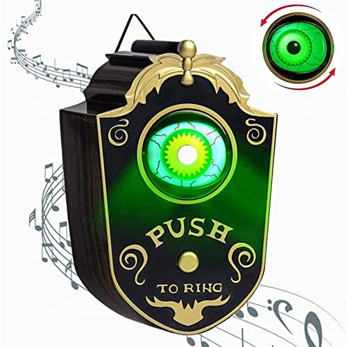 XUJAIOLQP Halloween dörrklocka, dekoration, animerad enögd upplyst ögonglob, dörrklocka med läskiga ljud, bus eller godis-händelse för barn, halloweenfest, hemsökt hus, rekvisita, dekor (svart)