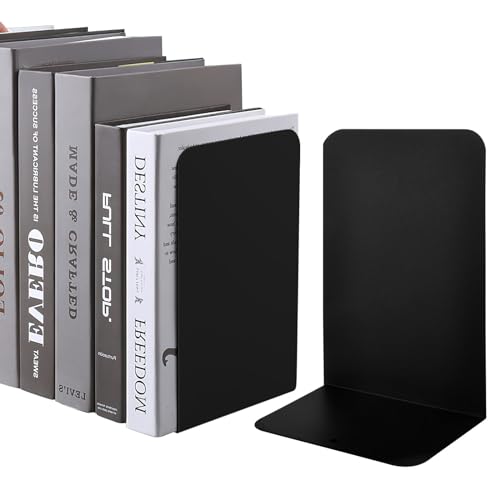 Iycnkok Bokstöd bokstöd i metall bokstöd – bokhållare hylla bokhållare CD DVD – bokmärken ingår mapphållare för skrivbord hemmakontor barn, 3 par svarta