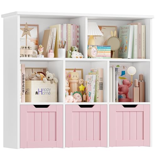 FOREHILL Barnhylla med lådor på hjul, barnmöbler, leksaksgregel, förvaringshylla, bokhylla för barn, barnskåp, hylla med 3 lådor, 100 x 33 x 89,5 cm (rosa)