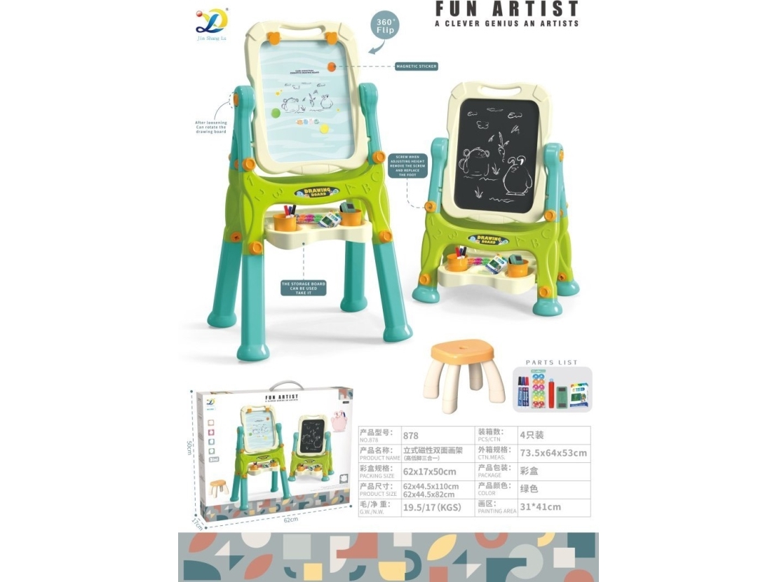Jokomisiada 2-I-1 Magnetisk Griffeltavla För Barn 3+ Tillbehör + Höjdjustering + Pall + Hylla + Kritpennor