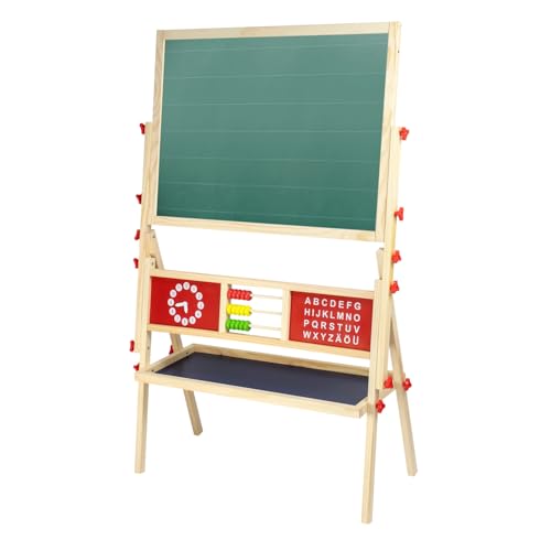 Idena 20177 – magnetisk stativtavla för barn, dubbelsidig med hylla, abacus och klocka, krittavla och magnetisk tavla av FSC-trä, ca 76 x 38 x 118 cm