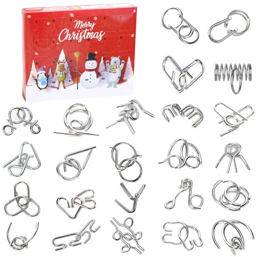 Adventskalender 2024 barn julkalender presenter 24 stycken metallpussel pusselspel metall IQ-pussel pusselspel skicklighetsspel för pojkar flickor ungdomar och vuxna