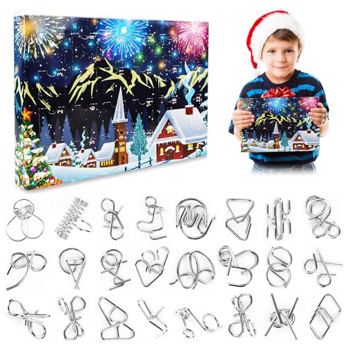 Adventskalender 2025 - Pusselspel för Barn och Vuxna Familj | 3D Metallpussel & Träpussel IQ Test Skicklighetsspel | Rolig Julkalender med 24 Lärorika Utmaningar | Julklapp till Pojkar och Flickor