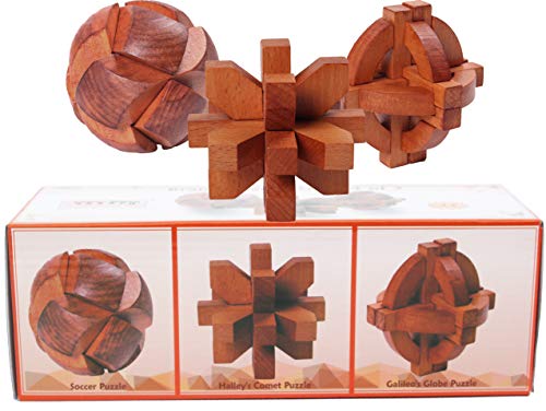 Pussel av hjärnteaser i trä - Galileo-klot, Halleys komet och låsbollspussel - IQ-pusselspel för vuxna Barn-gåvor för män-Presentuppsättningar till honom-Gåvor för män som har allt