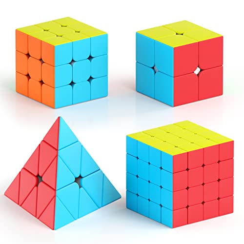 Vdealen Magiska Kubuppsättning, 2X2 3X3 4X4 Pyramidkub, Pedagogisk Pusselkub för Barn, IQ Toys är för Alla, 4-pack