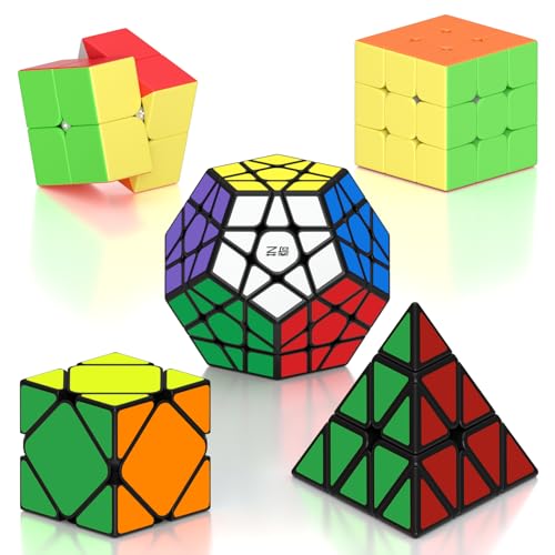 ROXENDA Magic Cube Set, [5-Pack] Speed Cube Set med 2x2x2 3x3x3 Skew Dodekahedron Pyramid Magisk Kub, Smooth 3D Puzzles Magic Cube, IQ-spel för Barn