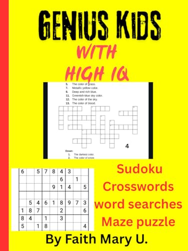 Genius kids with high IQ: Crosswords, sudoku, word searches,maze puzzle
