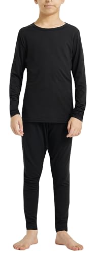 YUSHOW Barn termiska underkläder långärmad undertröja varma långa kalsonger barn pojkar termo underkläder termobyxor pojkar fotboll funktionella underkläder skidunderkläder, svart, 9-10 år