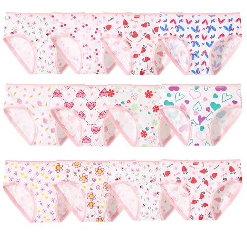 Anntry Barn slumpmässigt paket med 12 kalsonger bekväma och mjuka kalsonger bomullsunderkläder små flickor blandade trosor 2–12 år, F4-slumpmässiga trosor 12 st, 5-6 år