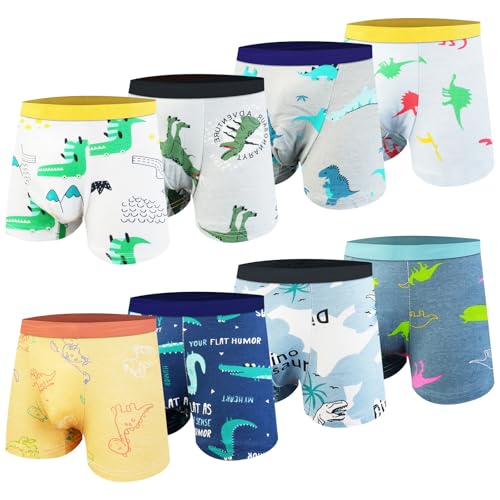 HOTUT Pojkar kalsonger, 8-pack bomull boxershorts barn underkläder pojkar boxer kalsonger, dinosaurier, 110-120