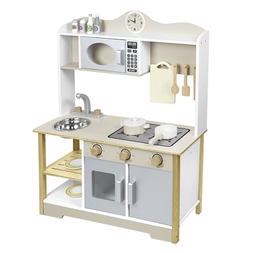 VEVOR Lerkök för barn, bredd 1 000 mm träleksak köksset med tillbehör, lekset för livsmedelsbutik, barnkök med spis och handfat