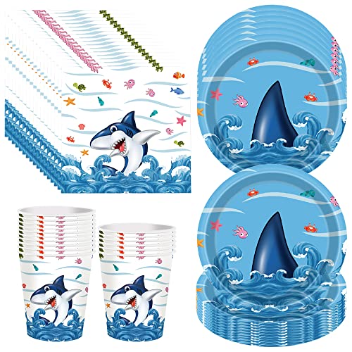 MEZHEN Haj födelsedagsservis havsdekorationer födelsedagsfest servis barn tallrikar muggar servetter bröllop babyshower 16 gäster