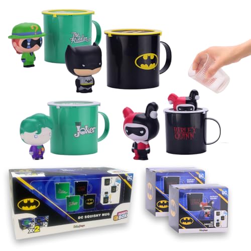 Sbabam FUNNY Box DC Squishy Mug, Squishy Karaktärsmugg DC Comics 2 delar - Batman Joker Riddler Muggar Harley Quinn – mugghållare för barn, lek, tidningskiosk, barnpresent, 3