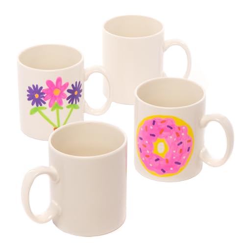 Baker Ross EC1121 Porslinsmuggar för Barn att Dekorera, Designa Dina Egna Muggar, Paket med 4