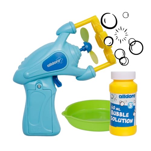 alldoro 60624 Bubble Fun tvålbubbelpistol med 60 ml såpbubbelvätska, Bubble Shooter tvålbubbelmaskin, mekanisk såpbubblor pistol ca. 13,9 x 11,2 x 4 cm, för barn från 3 år