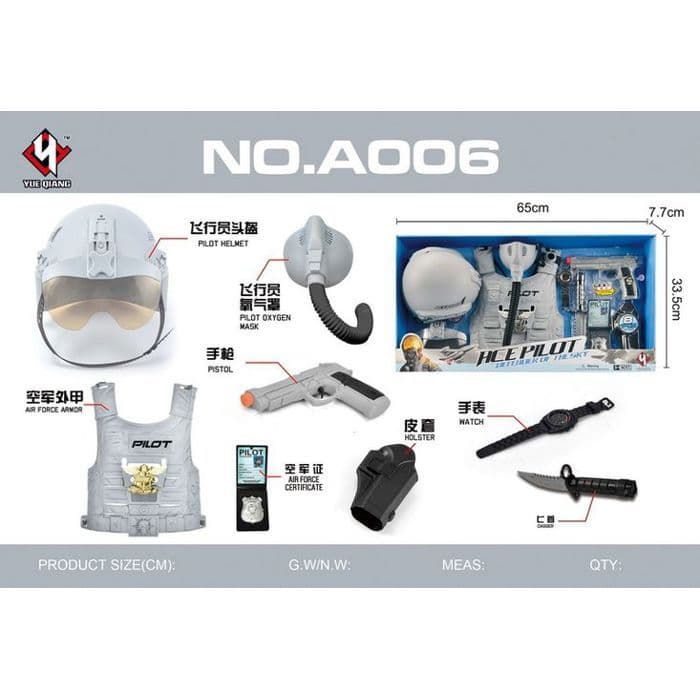 Liten Pilotsats för barn 3+ Interaktiv Pistol + Justerbar Hjälm + Väst med Syrgasmask + Tillbehör