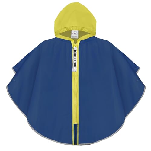 Regnponcho Pojke 3 4 5 6 År med Dragkedja - Regnjacka för Barn Grundskola Vattentät Reflekterande Profiler EVA Material - Regnkappa Poncho med Knappar Regnsäker - PERLETTI (3-6 År, Blå och Gul)