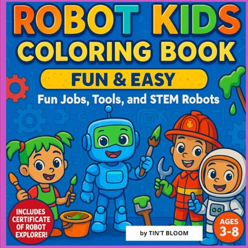 ROBOT KIDS COLORING BOOK FUN & EASY: FUN JOBS , TOOLS AND STEM ROBOTS FORD KIDS 3-8 AGES, INCLUDES CERTIFICATE OF ROBOT EXPLORER