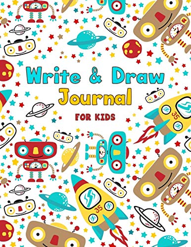 Write and Draw Journal for Kids: Space & Robot Primary Composition Notebook Half Page Lined Paper with Drawing Space