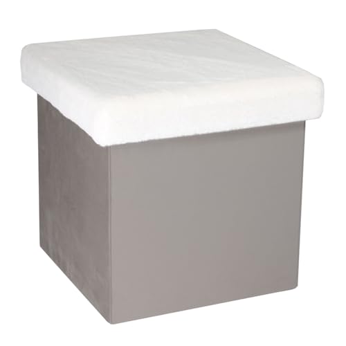 HOME DECO KIDS Imitation Päls Leo möbler sittbänk hopfällbar bänk entré vardagsrum sovrum matsal möbel, textil-polyester, grå vit, 38 x 38 x 38 cm